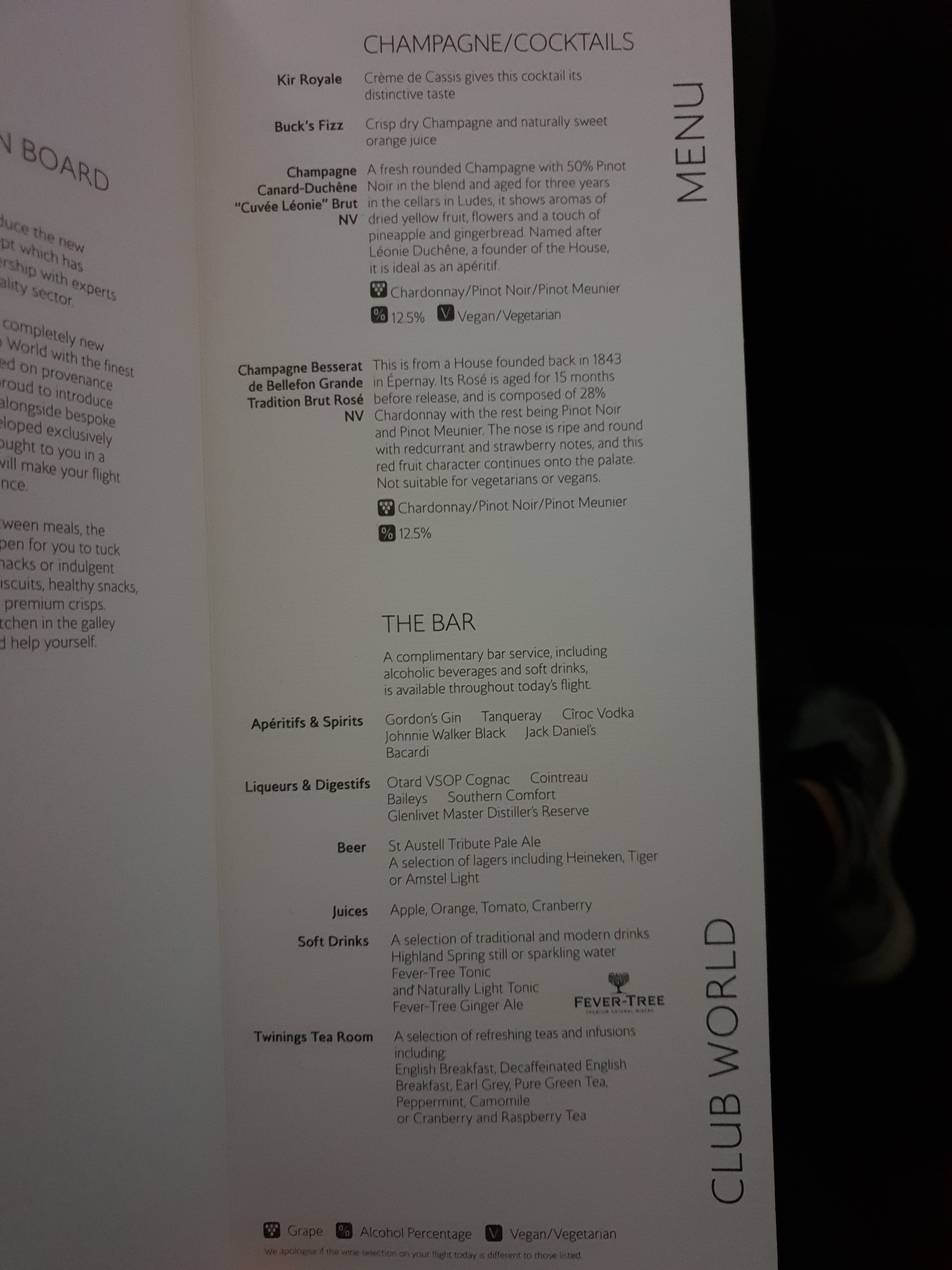 British Airways Club World food