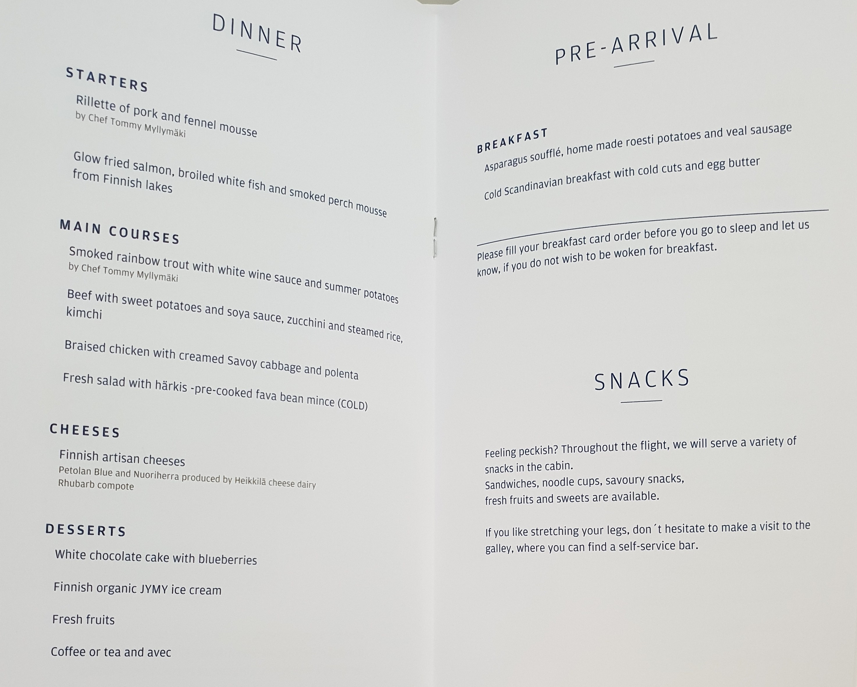 Finnair business class menu A350 Helsinki to Seoul