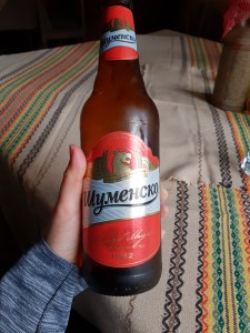 Sampling the local Bulgarian beer, Shumensko